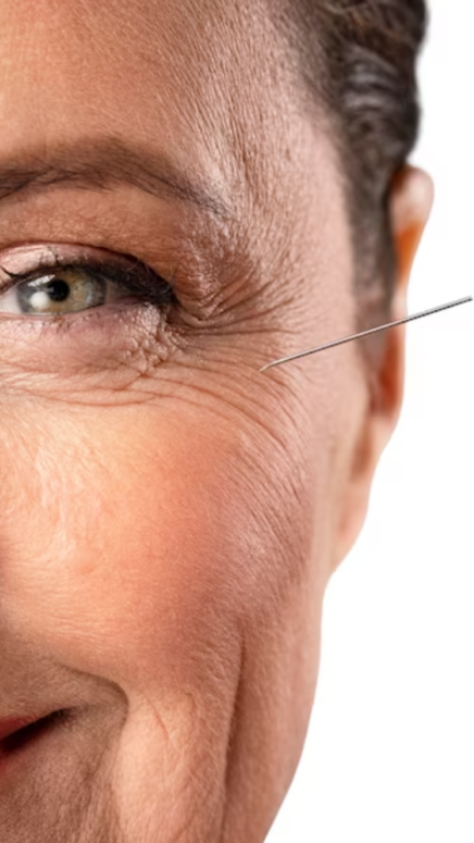 Le visage voit sa forme changer avec l'âge et progressivement les rides, les creux et les pertes de volume sont de plus en plus présentes .